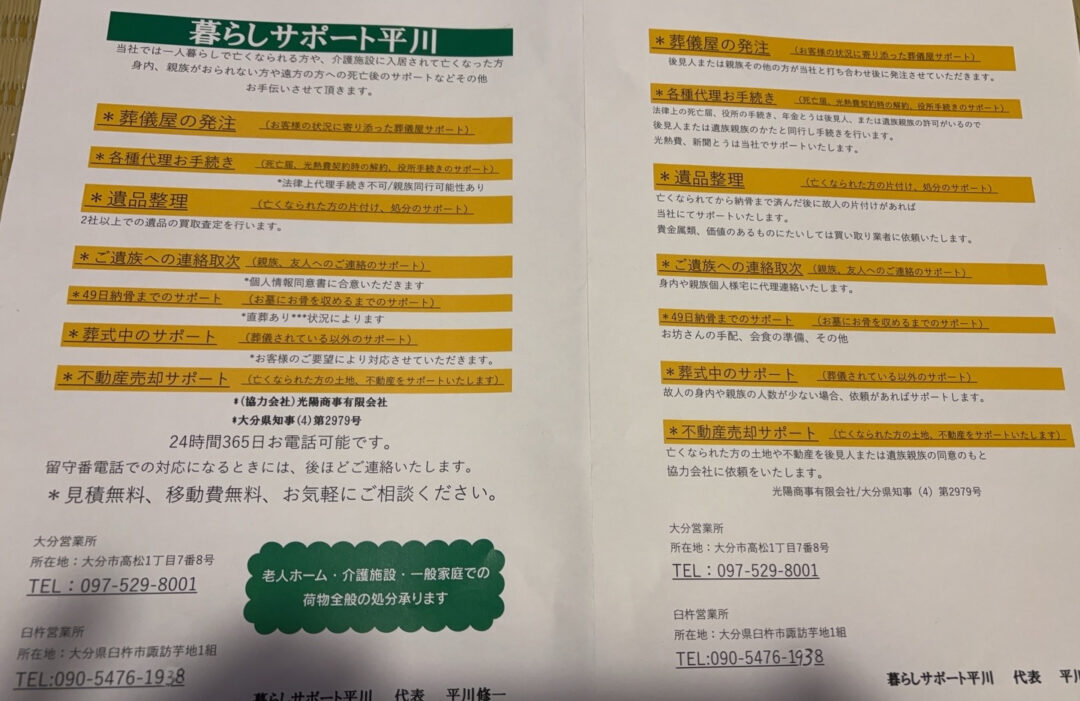 こんにちは、暮らしサポート平川です私たちは、新たにサポート事業を開始いたします。私たちの使命は、皆様の暮らしをより快適で安心できるものにすることです✨