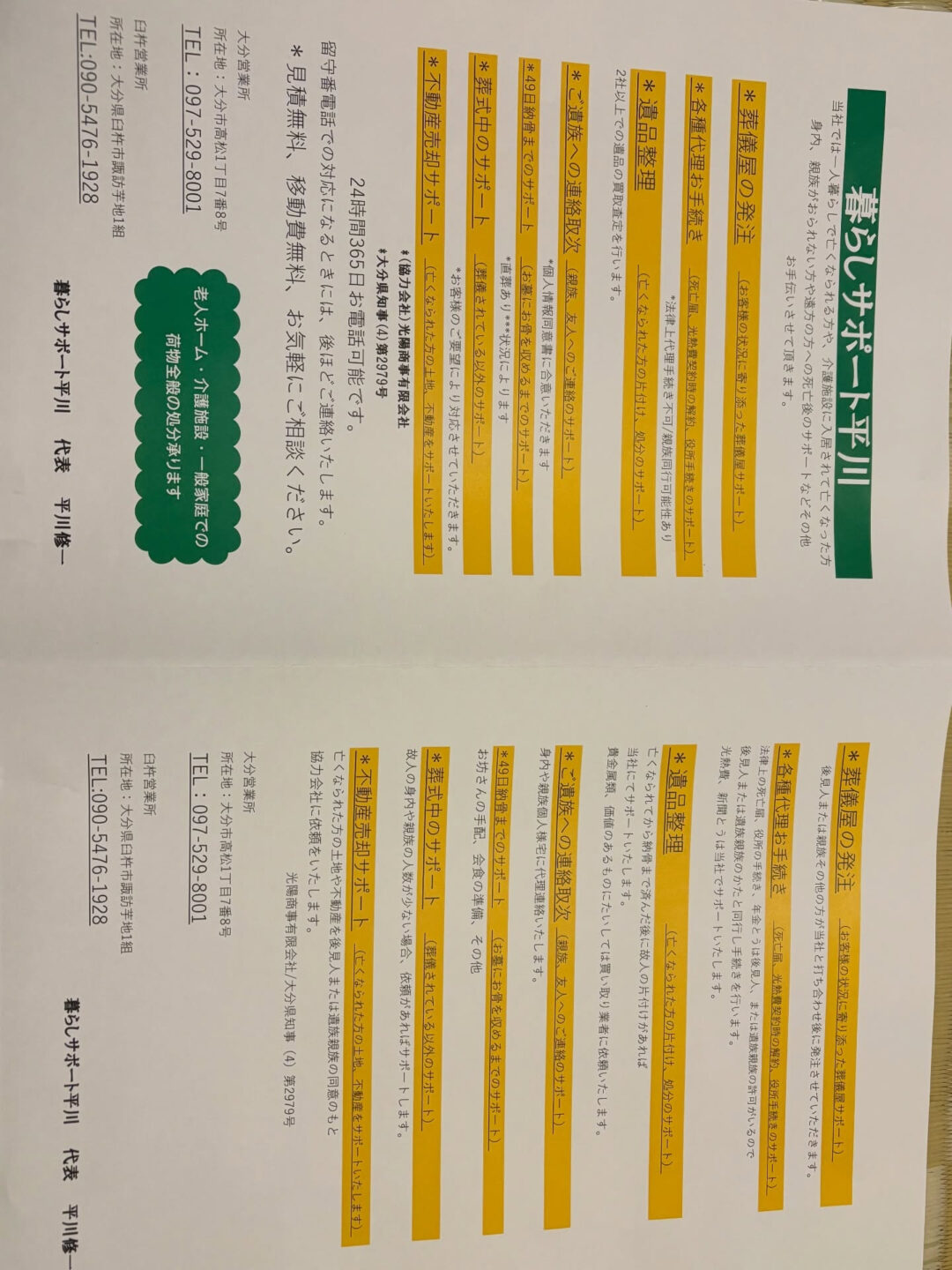 ☎️097ー529ー8001 携帯090ー5476ー1938